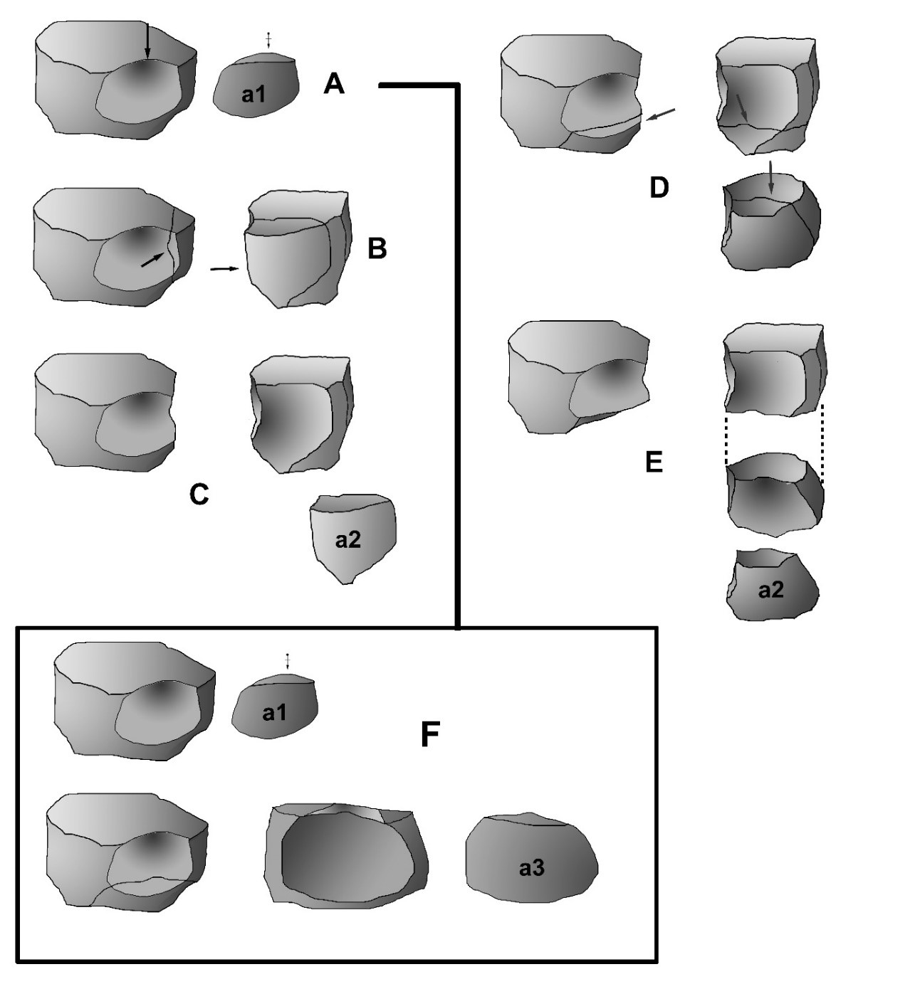 Bourguignon, L., Faivre, J.-P. & Turq, A. 2004, Ramification des chaînes opératoires: Une spécificité du moustérien? Paléo - Revue d'Archéologie Préhistorique, 16(Décembre): 37-48. (in French) (“Branching of operational sequences: A specific feature of the Mousterian?”) URL: https://www.academia.edu/54187381/