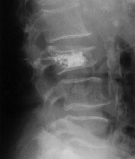 Radiological Society of North America. Osteoporosis. Available at <http://www.radiologyinfo.org/en/photocat/gallery3.cfm?image=xray-osteoporosis-vertebroplasty.jpg&pg=osteoporosis > Accessed 13 December 2014.